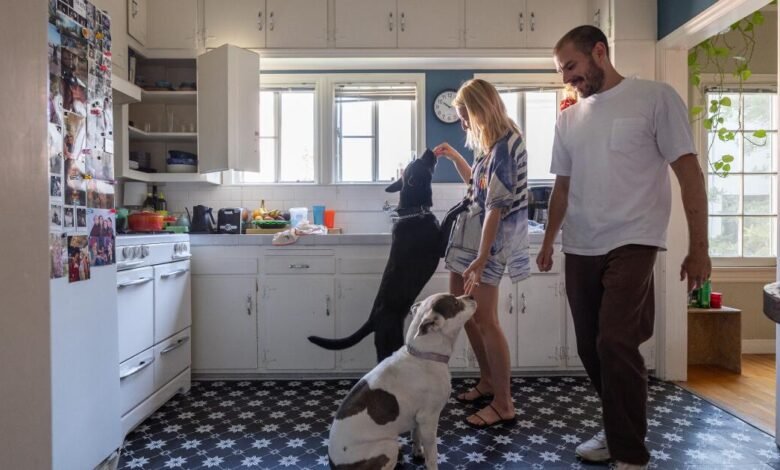 Cuando Natalie Babcock y Samuel Gibson encontraron una lista de apartamentos brillantes en Beachwood Canyon hace cinco años, inmediatamente cayeron por encantadoras salas de dos camas, chimeneas falsas, pisos de madera dura y comedores formales. Instalaciones prácticas como unidades de lavandería y garaje, que a menudo es difícil de entender En Los Angeles Rental, no hay nada de malo.