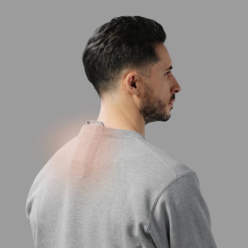 El diseño del dispositivo se caracteriza por la simplicidad y la elegancia, ya que se puede colocar en la parte posterior del cuello para extenderse a su área inferior y dos monedas envueltas en el cuello del usuario para instalar el dispositivo. Su diseño no atrae la atención y se puede usar fácilmente debajo de la ropa.