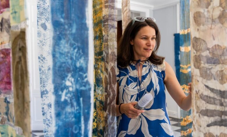 Instalación del artista de «Canopy Cool Canopy» de Chantée en Descanso Gardens el 9 de julio de 2025.